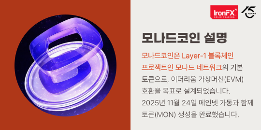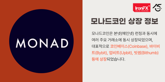 안녕하세요. IronFX입니다. 최근 많은 관심을 받고 있는 코인 중 하나인 모나드코인 가격 시세와 상장 정보와 전망까지 확인해 보겠습니다. 투자자 입장에서 반드시 살펴봐야 할 주요 정보와 리스크 요소를 함께 분석해 드립니다.