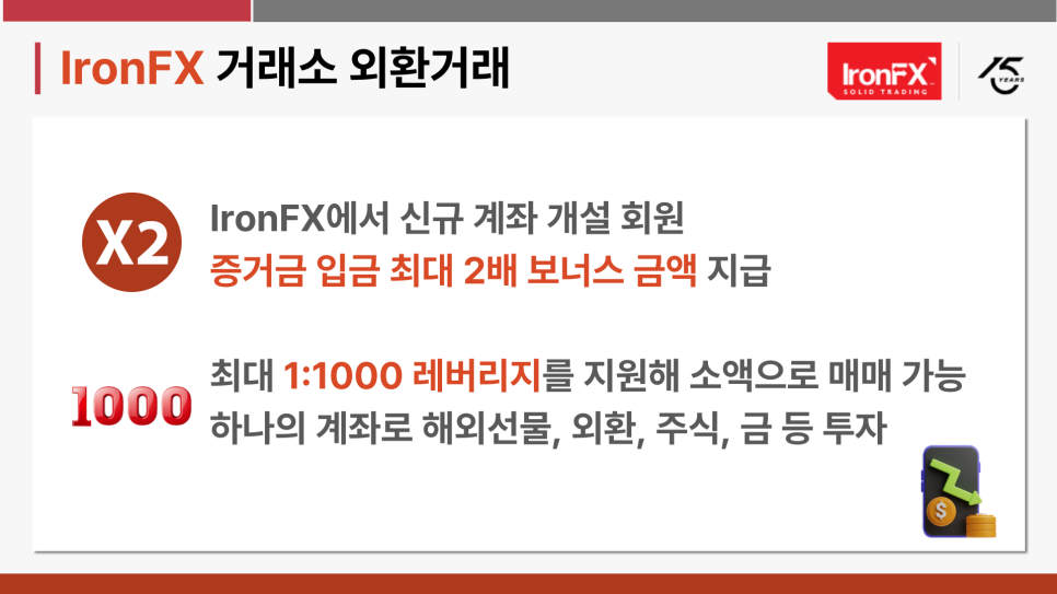 경제지표 매매를 진행할 때 가장 중요한 요소는 거래소의 체결 능력과 인프라일텐데요. IronFX는 글로벌 금융 당국의 엄격한 규제를 준수하며, 정식 라이센스를 보유하고 있습니다.