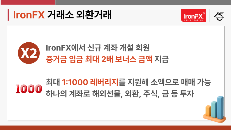 앞서 설명한 다양한 전략들을 실전에서 성공적으로 구사하기 위해서는 거래 플랫폼의 선택이 중요합니다. IronFX는 최대 1:1000 레버리지까지 제공하여 소액으로도 양방향 전략이나 단기 스캘핑을 구사할 수 있는 환경을 지원합니다.
