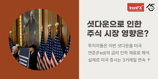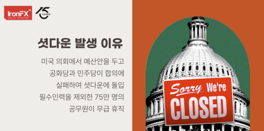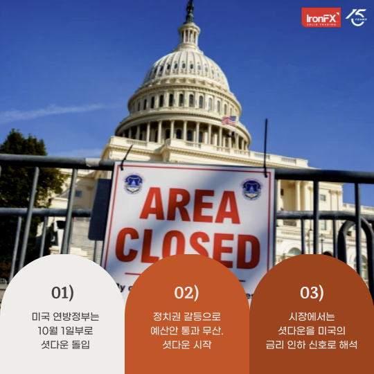 안녕하세요. IronFX입니다. 미국 연방정부가 셧다운에 돌입하며 글로벌 금융시장에 긴장감이 감돌고 있습니다.