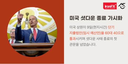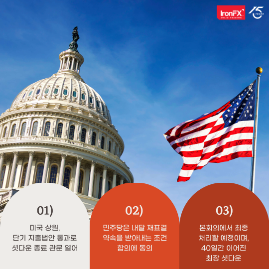 안녕하세요. IronFX입니다. 40일 넘게 이어졌던 미국 셧다운 사태가 마침내 종결 수순에 들어섰습니다.