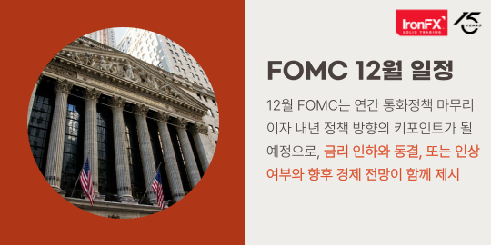 안녕하세요. IronFX입니다. 미국 주식이나 코인, 외환 투자를 하시는 분들이라면 올해 마지막 빅 이벤트인 12월 미국 FOMC를 절대 놓치셔서는 안 됩니다.