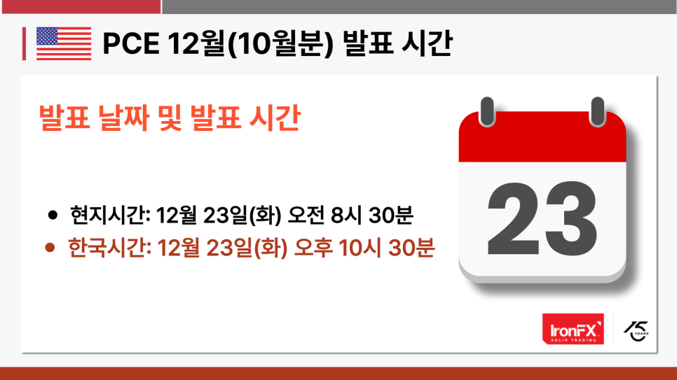 이번 10월분 미국 PCE 발표는 한국시간 12월 23일(화) 오후 10시 30분에 예정되어 있습니다.