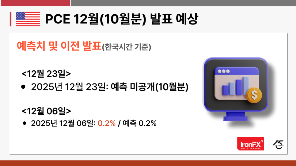 안녕하세요. IronFX입니다. 최근 미국 PCE 9월분이 발표되고 금일 10월분을 공개하게 되는데요. 셧다운으로 인해 미뤄졌던 경제지표 발표가 하나씩 순차적으로 공개되고 있습니다.