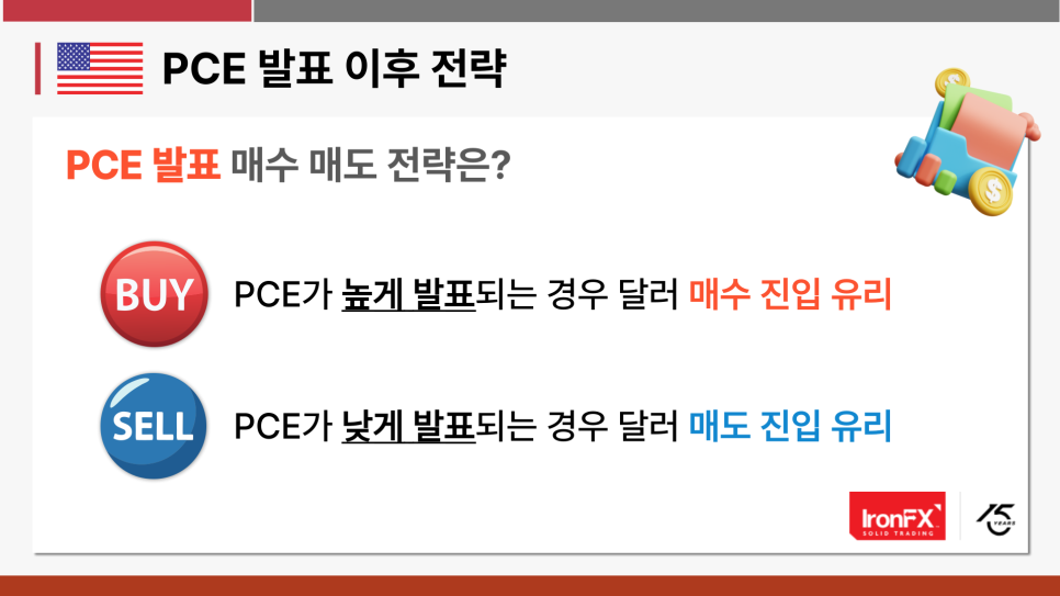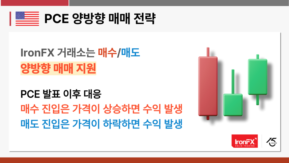 미국 PCE 발표 시간 직후에는 시장이 빠르게 반응할 수 있기 때문에 발표 전에 리스크를 줄이거나 포지션 비중을 조정하는 것이 좋습니다. 발표 직전에는 변동성이 확대되면서 호가 스프레드가 커질 수 있기 때문에 진입·청산 시점을 신중히 고려하시길 바랍니다.