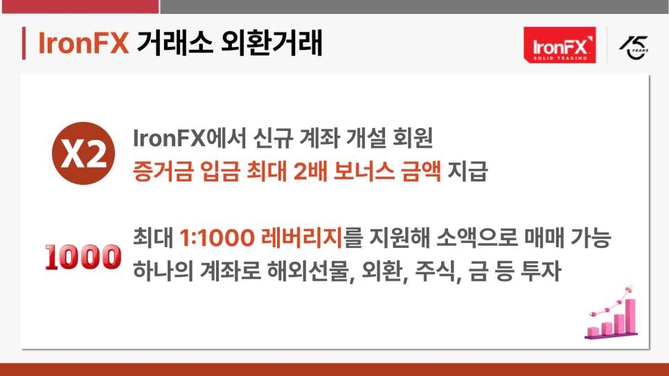 외환 뿐만 아니라 지수, 원자재 등 다양한 자산군을 하나의 계좌에서 거래할 수 있어 분산투자와 헤지 전략에도 유리하며, 현재는 글로벌 180개국에서 1700만 고객과 거래소 정식 라이센스를 보유하고 있습니다.