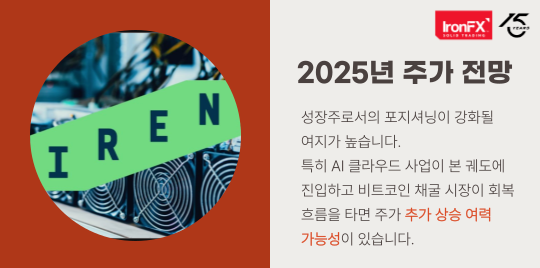 안녕하세요. IronFX입니다. 비트코인 관련주로도 알려져 있는 아이렌 주식이 최근 시장에서 이목을 끌고 있습니다.