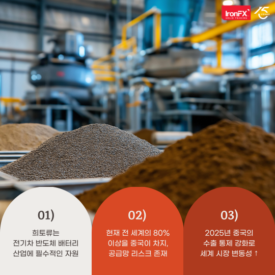 안녕하세요, IronFX입니다. 최근 미중 관세 전쟁이 격화되면서 희토류 관련 이슈가 다시 한 번 세계 시장의 중심에 섰습니다.